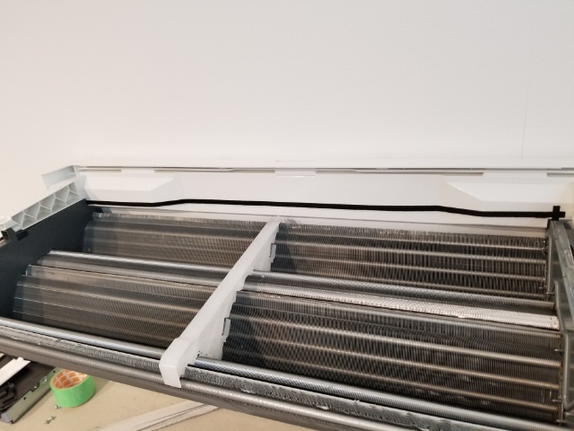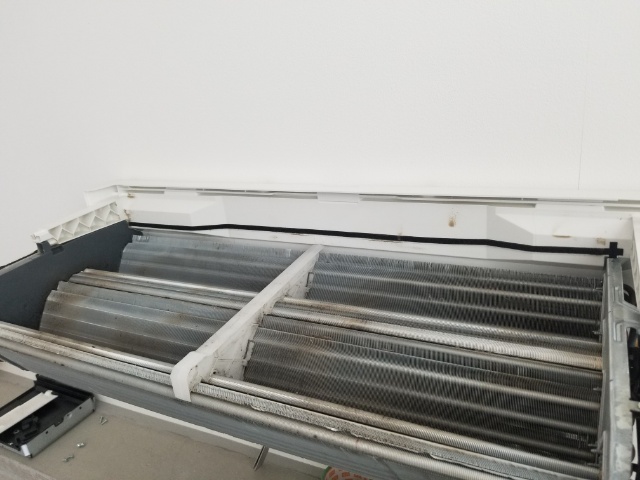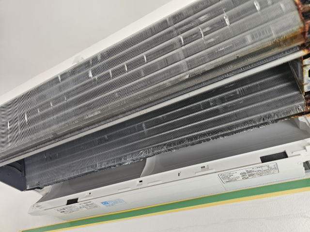 三菱FZシリーズの外装パネルを外した状態です。 この状態では熱交換器の一部しか見えていませんが、 この状態で洗浄する業者も多いと聞いています。 この状態だと熱交換器の一部しか洗浄できず臭いの元の汚れも除去できませんし、 電装部品に水が付いて故障の原因にもなってしまいます。 一般的なエアコンクリーニング業者は FZシリーズの送風ファンまでしか分解しない場合があります。当店では、 ・送風ファン分解洗浄 ・ドレンパン洗浄 ・熱交換器高圧洗浄 まで対応しております。 |